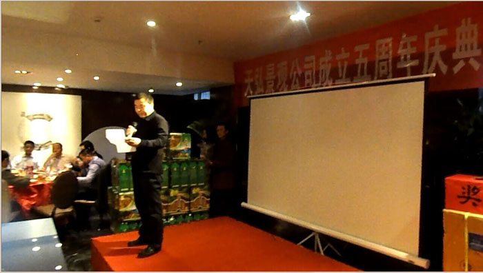 2015年2月7日下午,公司2014年度年终总结团拜大会暨公司成立五周年庆典年会在苏浙汇酒楼胜利召开。出席的嘉宾来自各个行业,包括公司领导亲属和员工亲属等近80余人。年会由员工们自己策划,自己主持,并且设置抽奖和小品,唱歌等环节。在主持人风趣,幽默的主持下,将年会一步步推向高潮。
